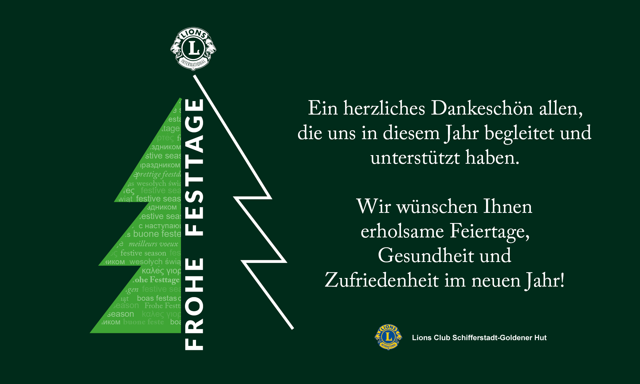 Der Lions Club Schifferstadt - Goldener Hut bedankt sich bei allen Lions Freunden, deren Familien, den vielen Sponsoren und Unterstützern für die angenehme Zusammenarbeit im ausklingenden Jahr.
